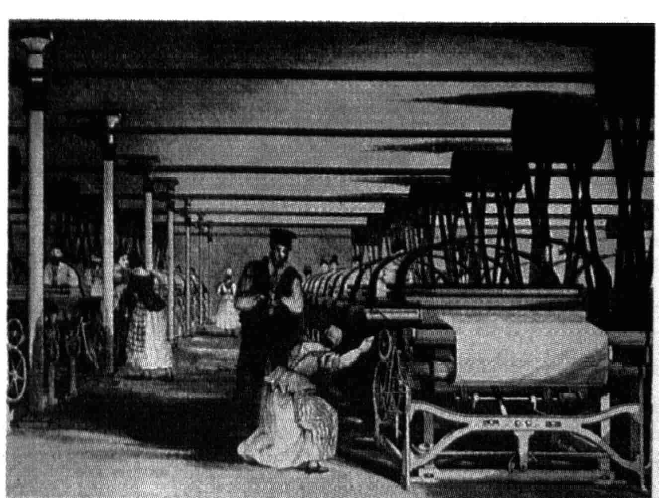 Máquina algodonera de Lancashire, Londres. Grabado de época.